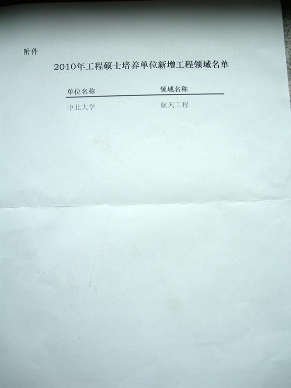 根据《关于批准2010年工程硕士培养单位新增工程领域的通知》(学位办【2010】9号)文件的批示,糖果派对 新增工程领域一个:航天工程。请获得新增工程领域的有关单位做好相关准备工作。